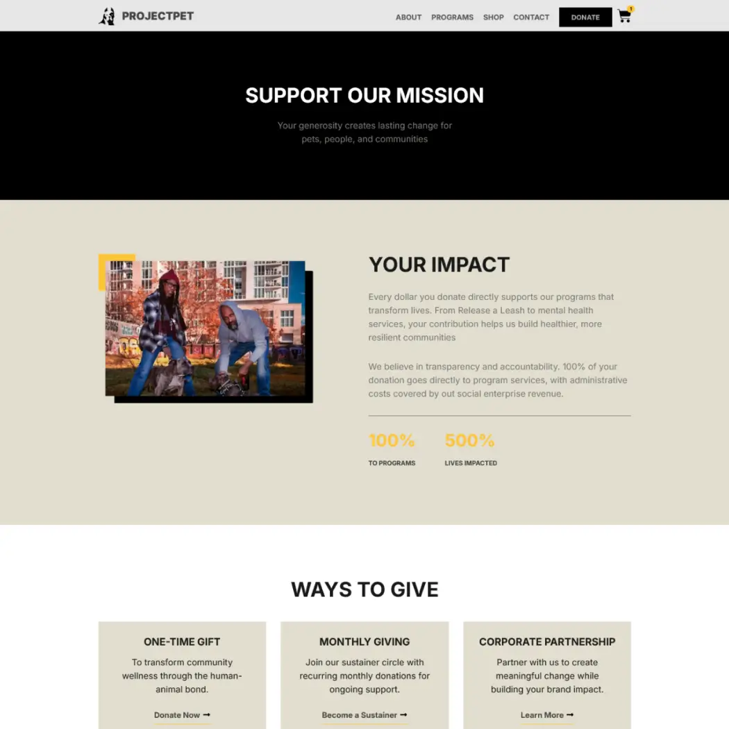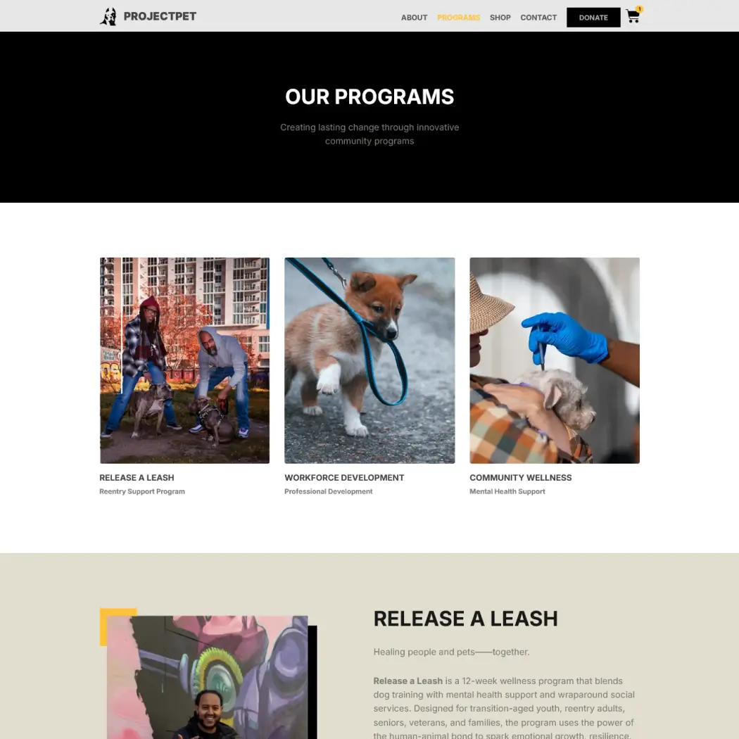 The website which Project Pet developed for their organization needed to deliver reliable performance while handling the organization shifting requirements. The objectives were clear: